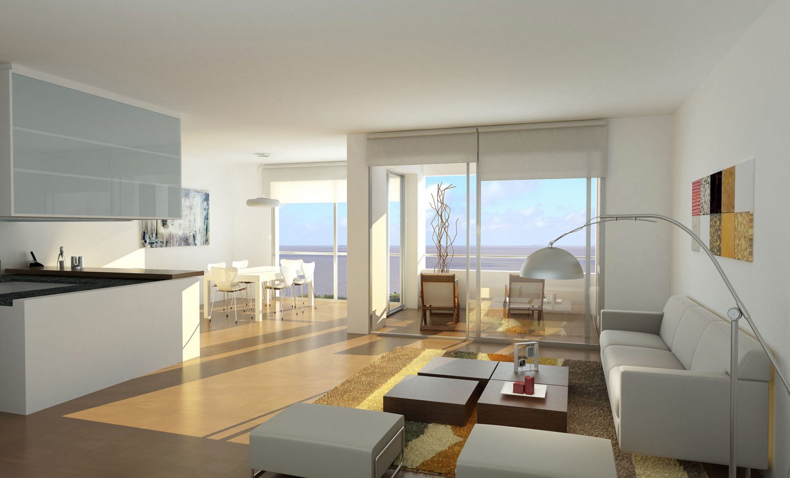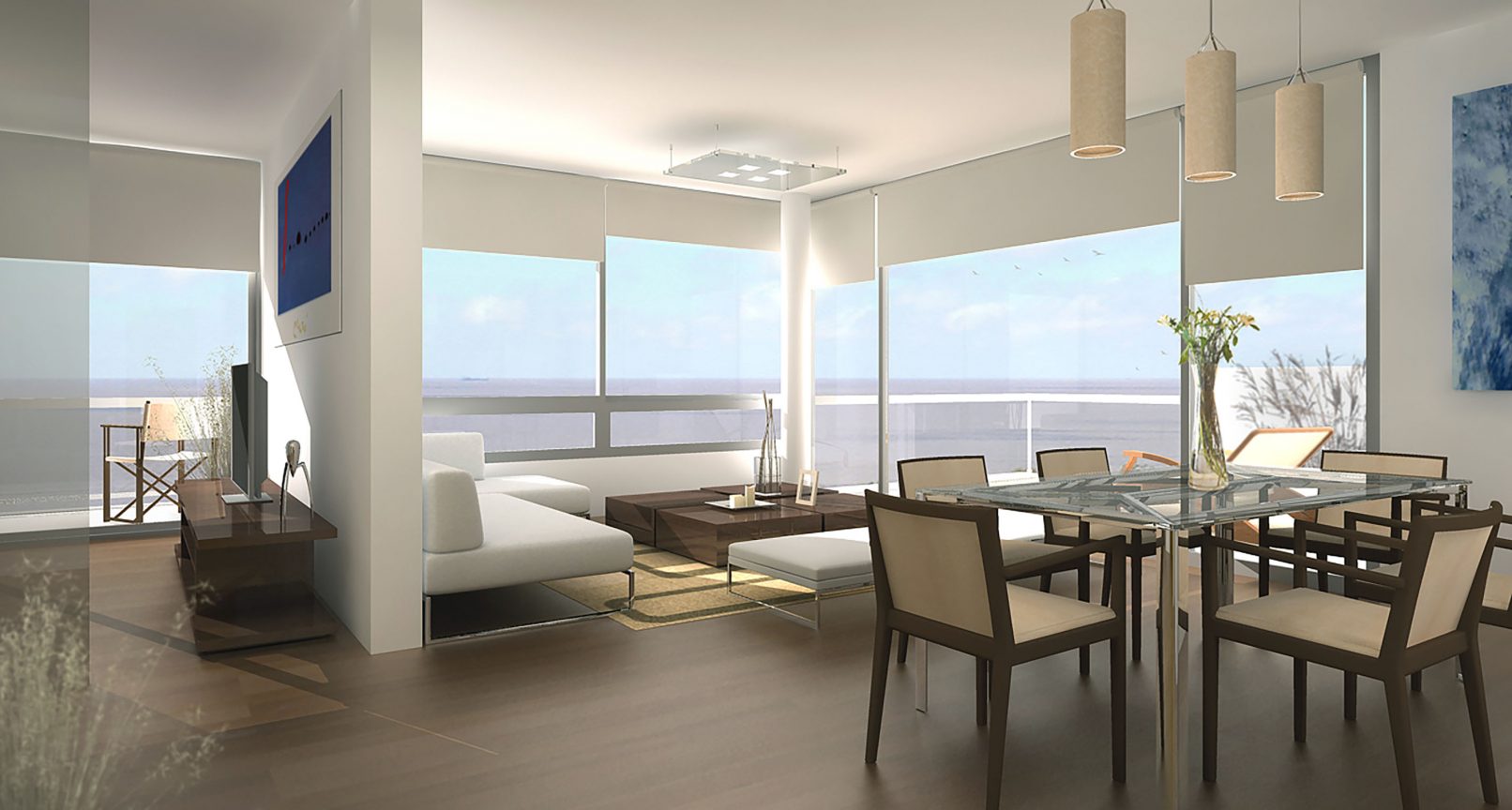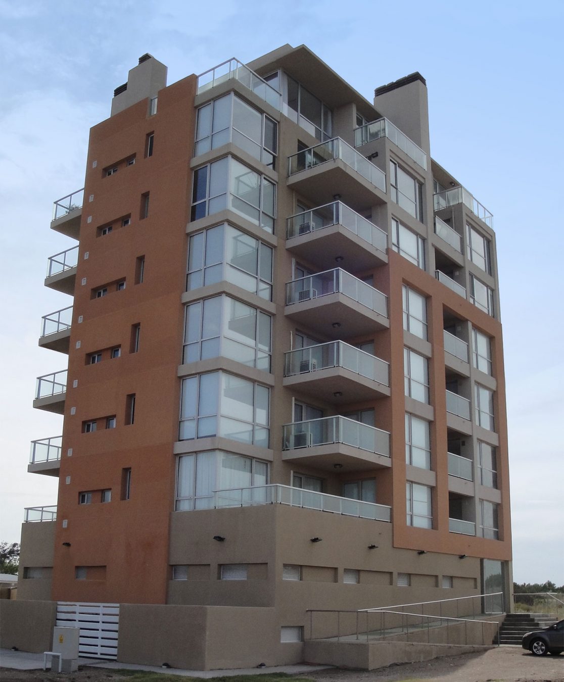 La principal idea que guió el proyecto fue la de crear un edificio simple y de líneas contemporáneas. Se puso especial hincapié en la espacialidad interior y en la relación de los distintos ambientes con el exterior. Los distintos tipos de departamentos reflejan lo que pensamos debería ser el estilo de vida en un lugar como Monte Hermoso del Este: abiertos, transparentes, de líneas simples.